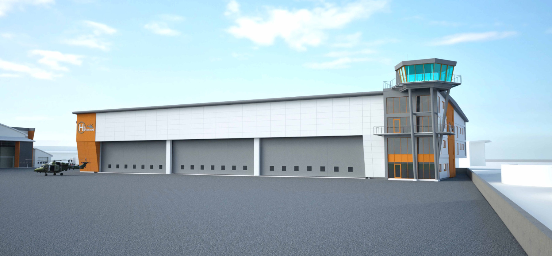 Construction of a modern, fully serviced helicopter hangar